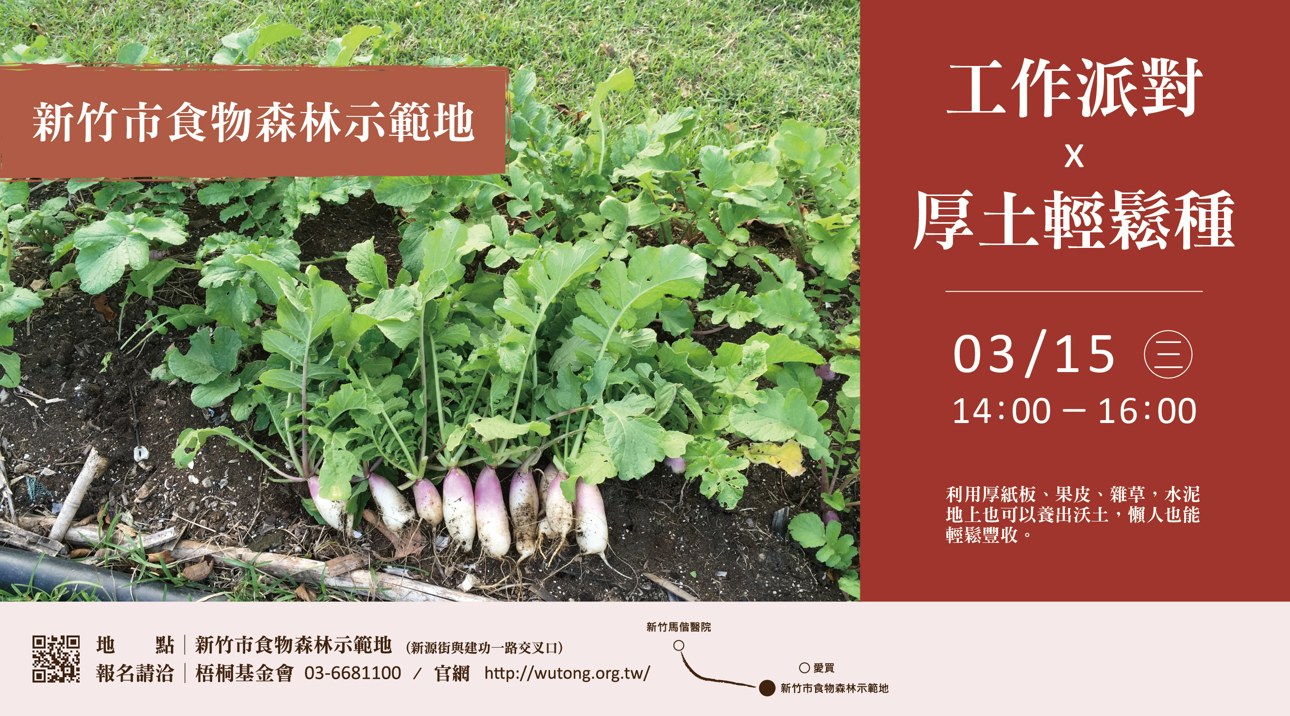 3/15(三) 邀您來 新竹市食物森林 ,一起學習「厚土種植法」!