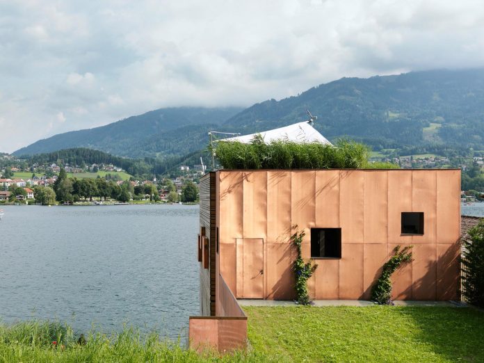 Boat’s House at Millstätter Lake built by wood and second part wrapped in a cover of expanded copper